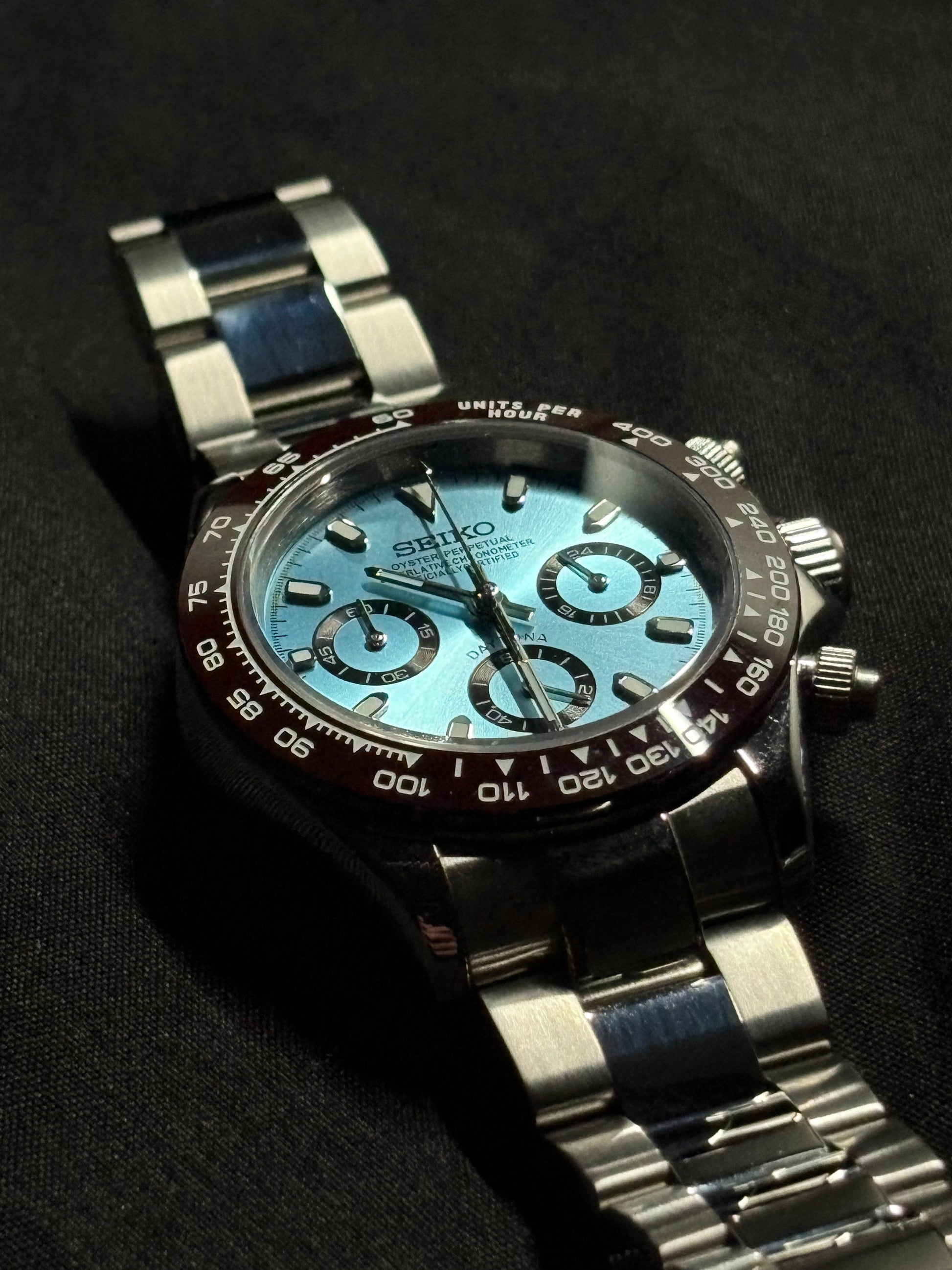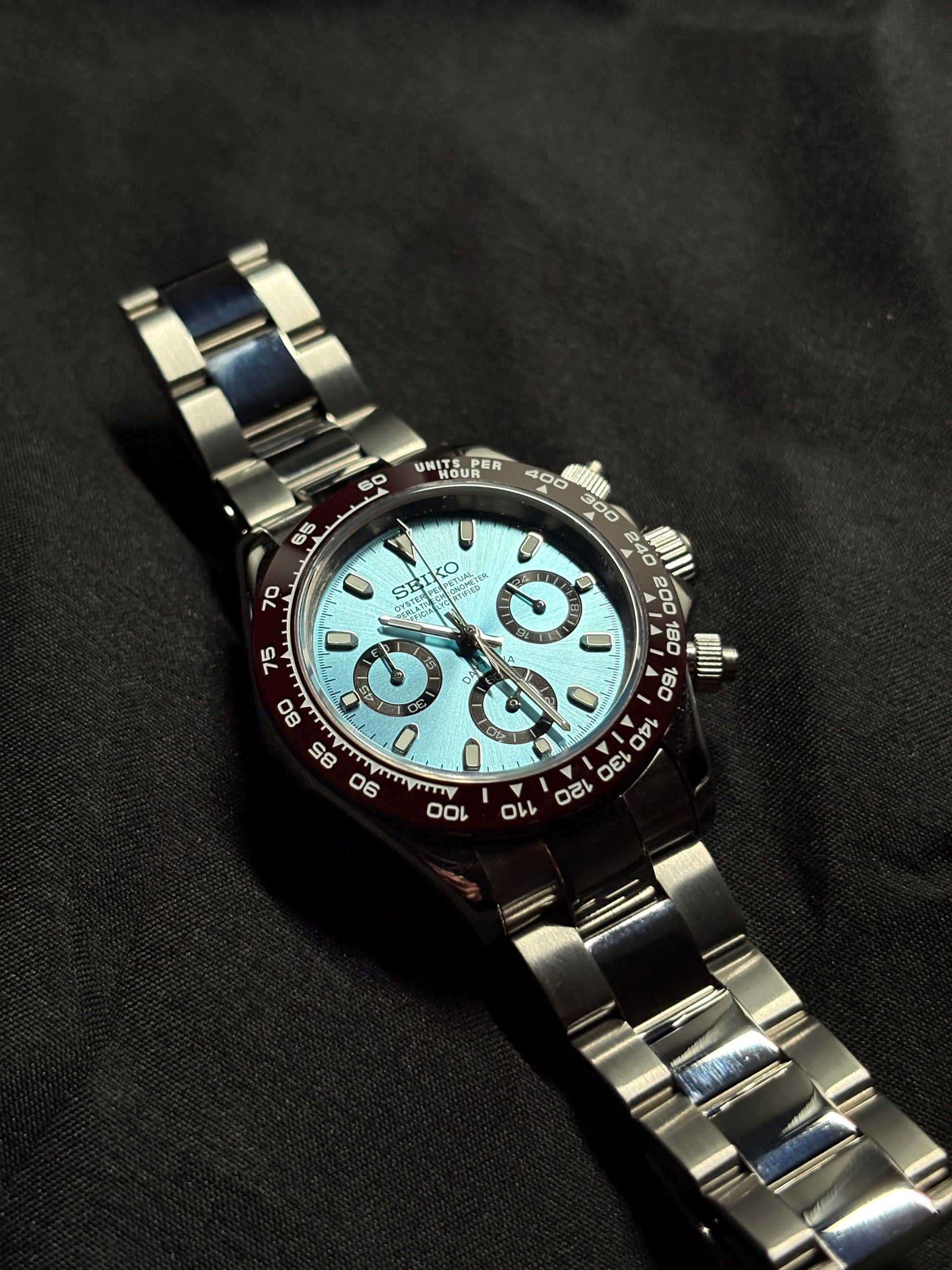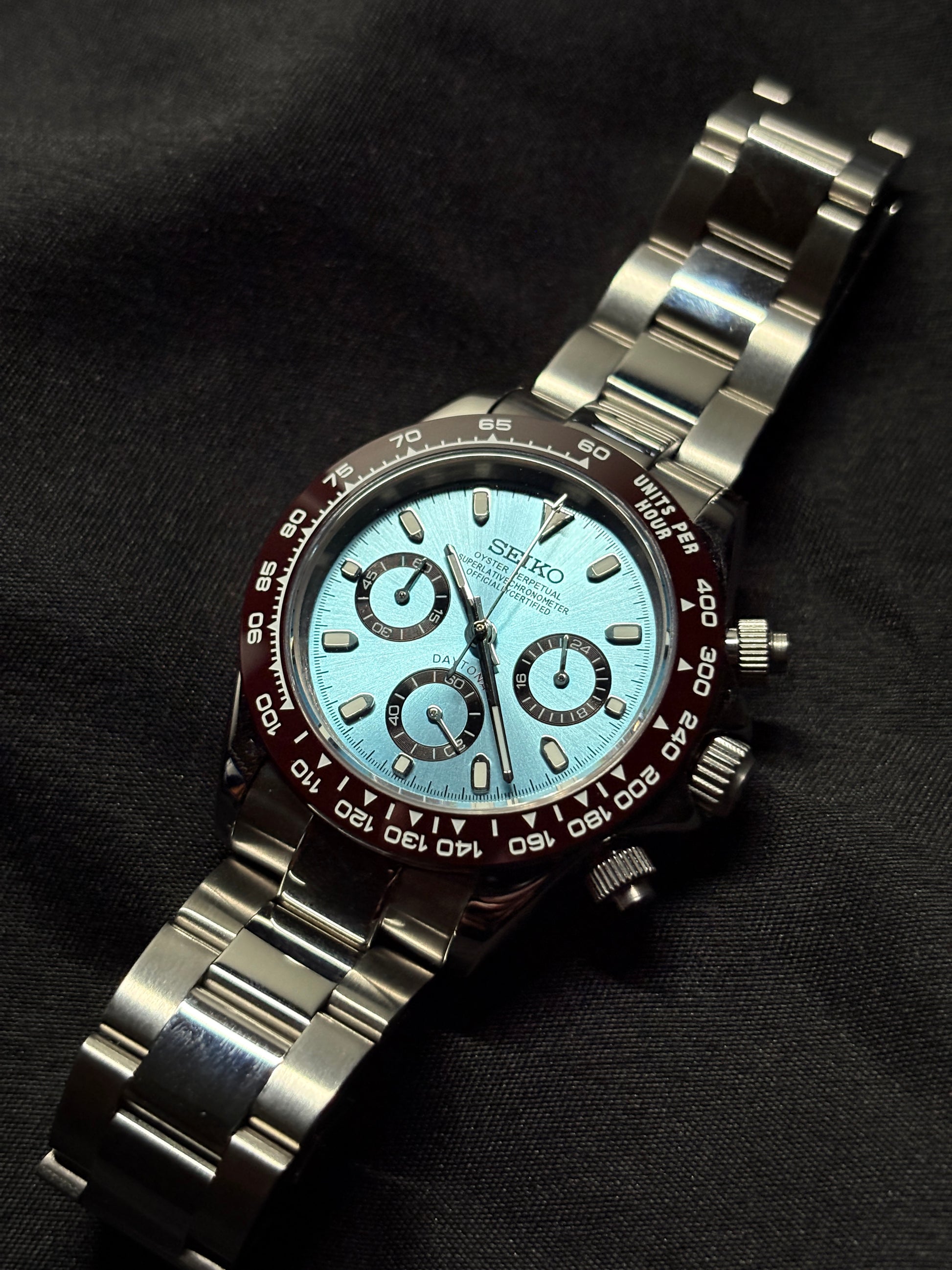 316L Stainless Steel Case, Scratch Resistant Sapphire Crystal, 40mm Diameter and 13mm Thickness, VK63 Quartz Chronograph Movement, 3 Subdial Chronograph (60s/60min/24hr), Stainless Mid-Polished Steel Oyster Bracelet, 30 Meter Daily Water Resistance. Handles Splashes and Rain.